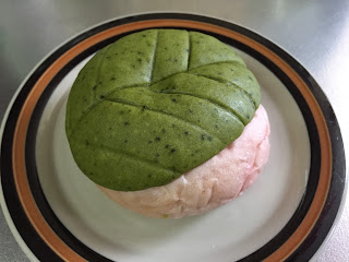 This bread was made to look like the sweets and had a green leaf shaped dough over a pale pink bread.